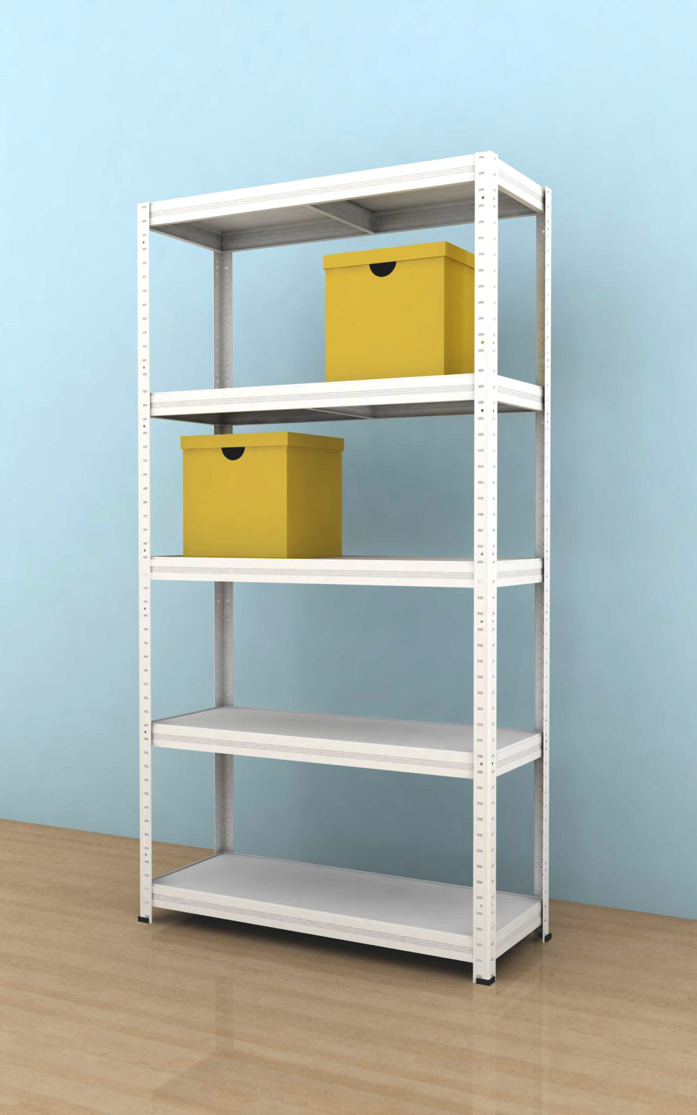 - Kovový regál Futur 2100x900x450/5, biela, 350kg/pol.lamino