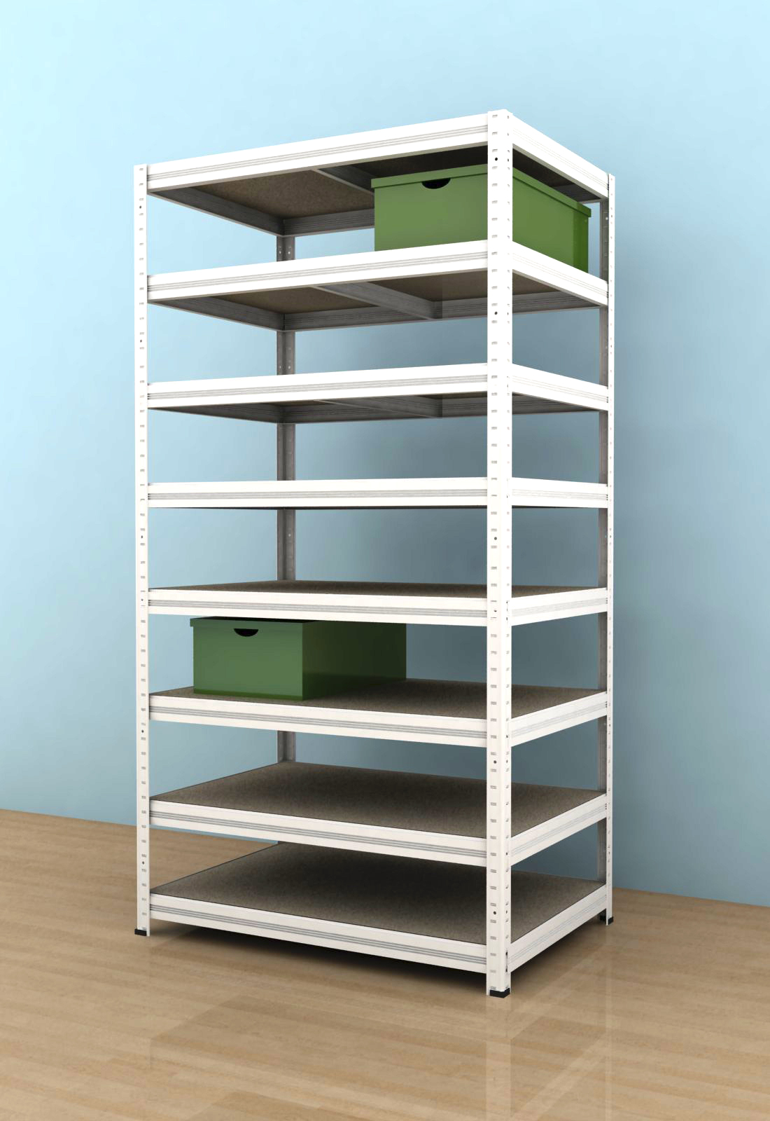 Regál typu Futur je univerzálny regál, ktorého montáž je jednoduchá ,bez skrutiek. Jednoduchosť montáže spočíva aj vďaka unikátnemu systému upevňovania nosníkov. Police sú vyrobené zo surovej drevotrieskovej dosky.V balení je 8 výstuh. Kovová konštrukcia regálu je stabilná a to preto, že je vyrobená z oceľového plechu. Využitie regálu Futur je veľmi široké ako v domácnostiach ( garáže, pivnice, komory, pracovne), tak aj vo firmách a úradoch ( dielne, sklady, archívy, obchody, sklady kancelárskych potrieb).Nosnosť jednej police je 350kg pri použití jednej výstuhy, pri výške regálu 2100 mm. Regál je nutné ukotviť ku stene.