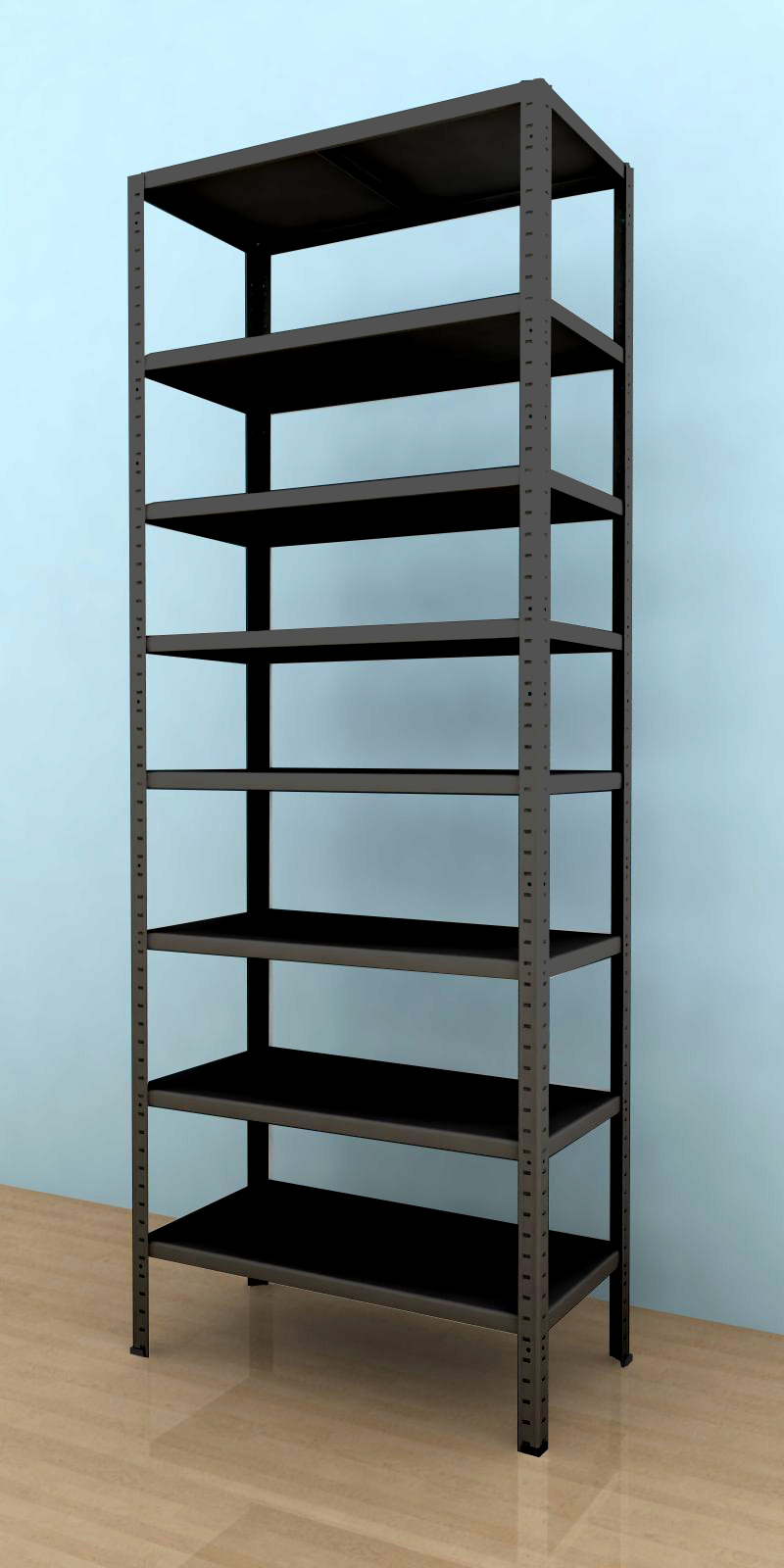 Kovový regál Drumy 2100x800x400/8, 130kg/pol., čierna